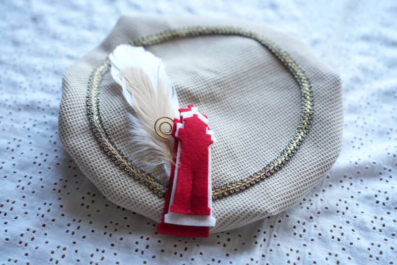 Dit pietenmutsje is van Wafelkatoen stof, en heeft een gouden band, 2 veren en een leuke staf.